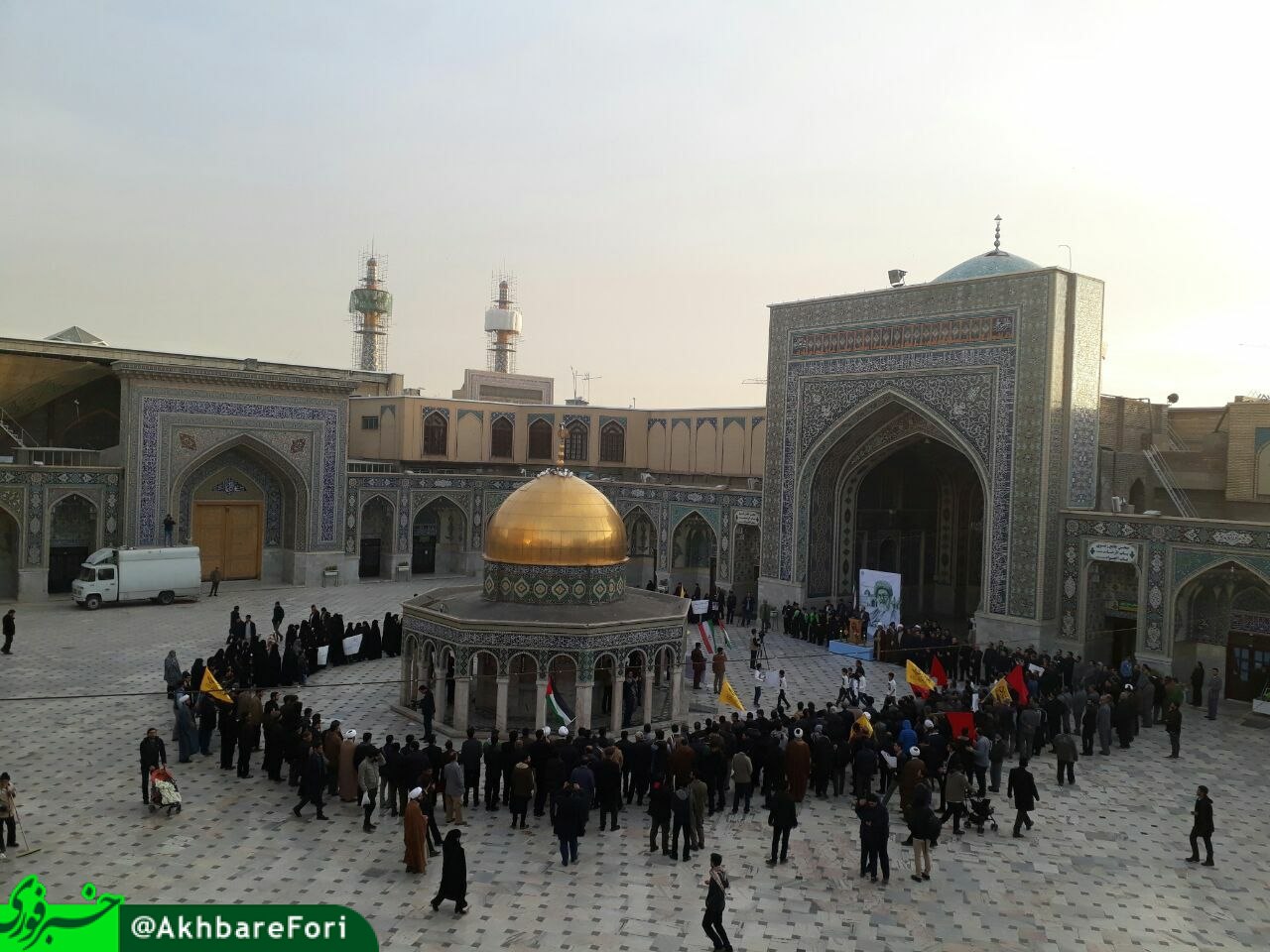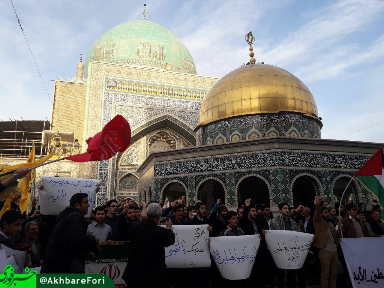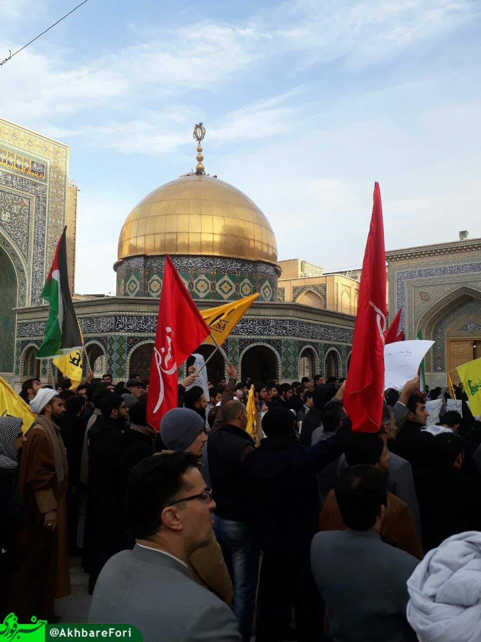 تجمع در صحن قدس حرم رضوی در اعتراض به توطئه آمریکایی، صهیونیستی