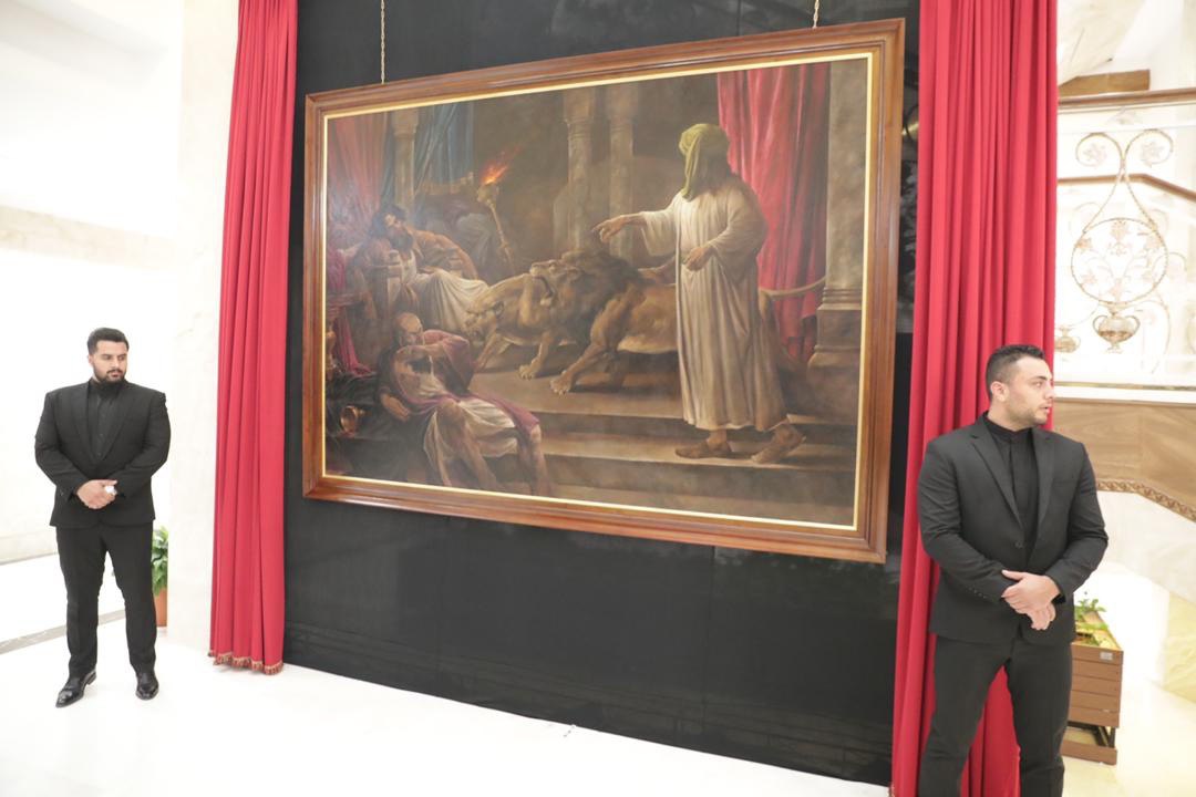 این دو تابلو نقاشی فاخر با عناوین «شیر پرده» و «مجلس محاجه»، اثر استاد حسن روح الامین است که در سبک باروک و به سفارش بنیاد بین المللی امام رضا(ع) با هدف ملموس کردن قصص دینی تولید شده است.