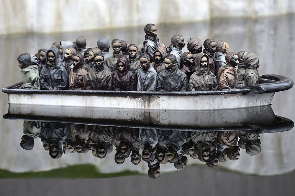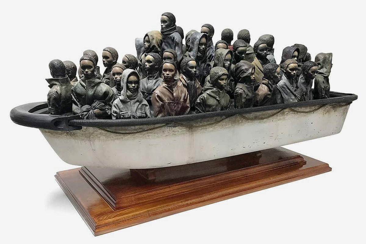 بنکسی با قراردادن این اطلاعیه در صفحه اینستاگرام خود، یک اثر تجسمی دستساز خود را به این قیمت به فروش گذاشته است. این اثر یک قایق حاوی پناهجویان به ابعاد ۹۰در ۳۸ در ۴۲ سانتیمتر و مجهز به موتور و باتری الکتریکی است و توانایی رسیدن به سرعت سه گره دریایی را نیز دارد.