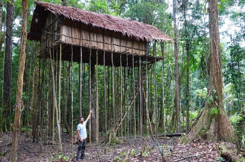 این مدرس مبانی اکوتوریسم ادامه می دهد: این نخستین مواجهه ما با بدویها بود. کمی با هم صحبت کردند و دوباره به مسیر ادامه دادیم. راهنما در جایی به ما گفت بایستیم. دوباره شروع کرد به داد زدن و دوباره جوابهایی آمد. ظاهراً اجازه ورود به محدوده قبیله را گرفت. پیش رفتیم و نخستین خانههای درختی از دور نمایان شدند. مجموعهای از 5 خانه این خانواده را تشکیل میداد. طبق گفته راهنما حدود یکصد نفر در این 5 خانه زندگی میکردند.