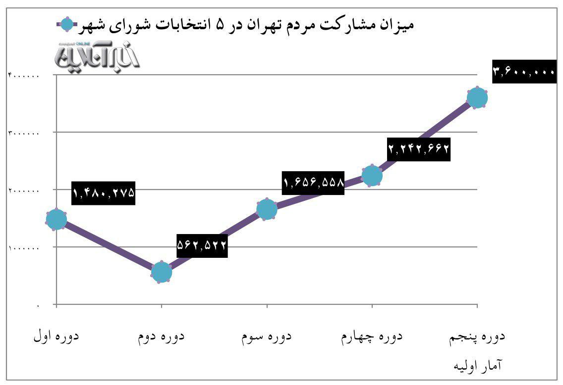 میزان مشارکت مردم تهران در ۵ انتخابات شورای شهر