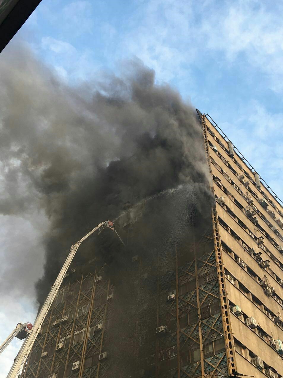 عملیات ۸ ایستگاه و ۱۵ خودروی آتشنشانی برای اطفای حریق ساختمان پلاسکو/۸ ایستگاه هم آماده باش هستند