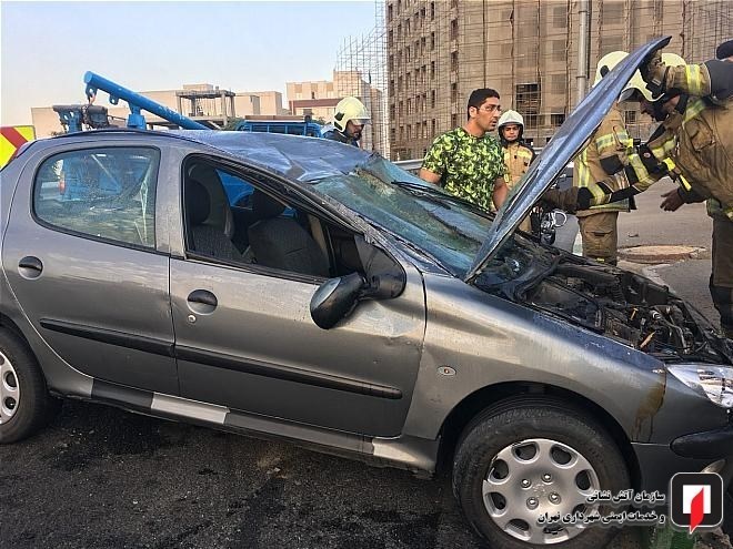واژگونی پژو ۲۰۶ در بزرگراه ستاری + تصاویر
