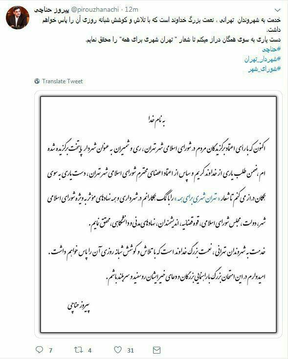 خبرفوری استانها تهران ۱ آذر ۱۳۹۷ ۱۵:۲۲ تصویر/توییت پیروز حناچی، شهردار منتخب تهران دست یاری به سوی همگان دراز میکنم تا شعار کپی شد کدخبر: 706558 ت ت منبع: خبرفوری 763 پیروز حناچی کپی شد با دوستان خود به اشتراک بگذارید: