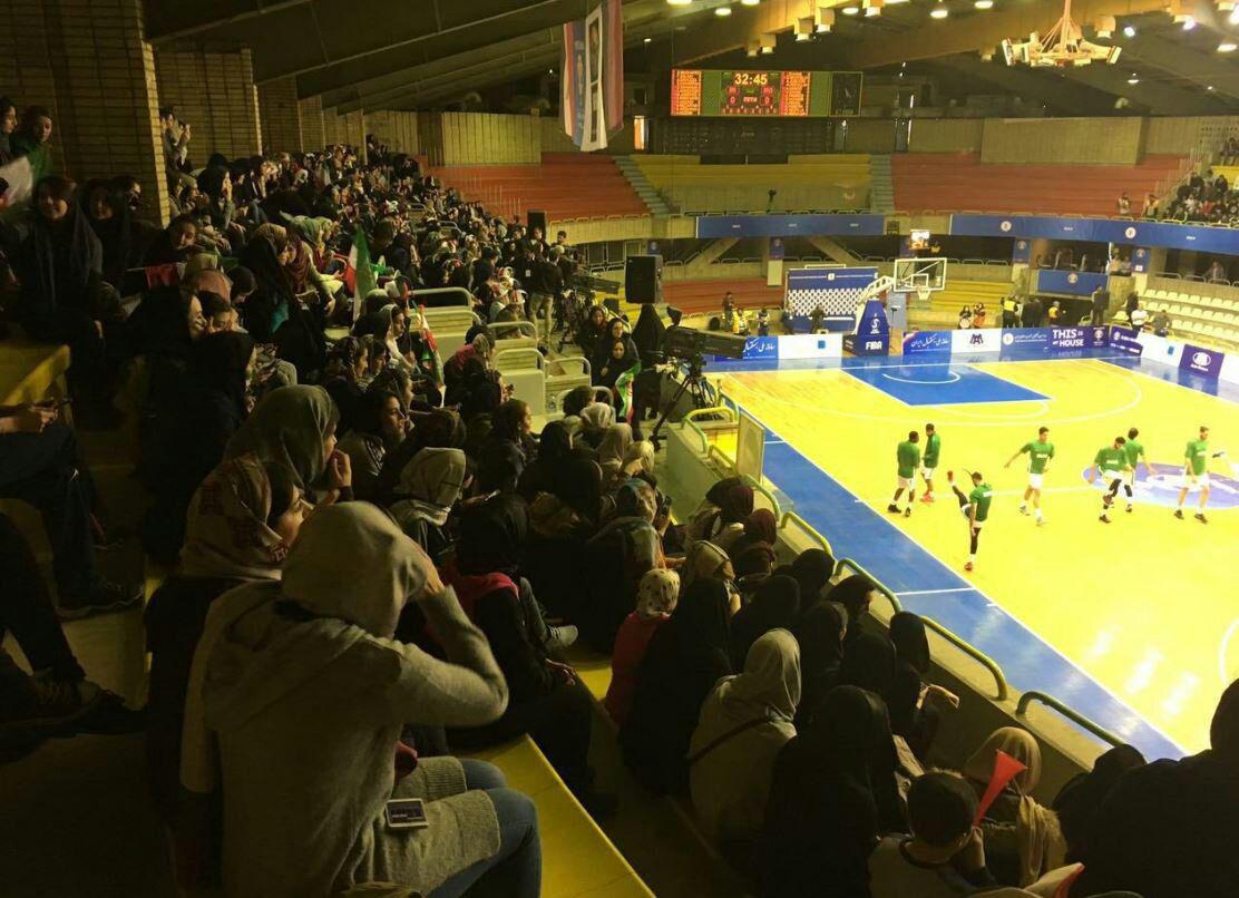 سالن بسکتبال با حضور تماشاگران ایرانی تقریبا پر شده و هنوز به تعداد هواداران در سالن اضافه می شود.