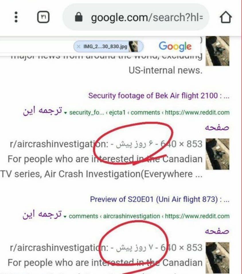 تصاویری که دیروز برخی رسانهها مدعی عکس موشکهای ایرانی اصابت کرده به هواپیمای اوکراینی شدند، سه روز قبل این حادثه در گوگل قابل دسترس بوده و ارتباطی به حادثه دو روز قبل نداشته است.