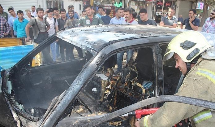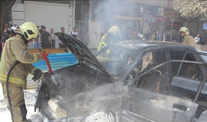 شعلهور شدن ناگهانی پراید حین حرکت در خیابان