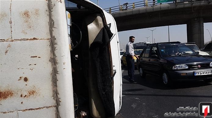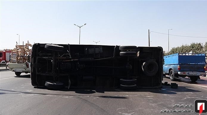 واژگونی مینیبوس در بزرگراه آزادگان + تصاویر