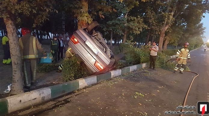 توکل قاسمپور؛ رئیس ایستگاه 14 آتشنشانی درباره جزئیات این حادثه اظهار کرد: یک دستگاه خودروی سواری پژو 405 به علت نامشخصی پس از برخورد با جدول خیابان و یک اصله درخت حاشیه بلوار، بر روی سقف واژگون شد.
