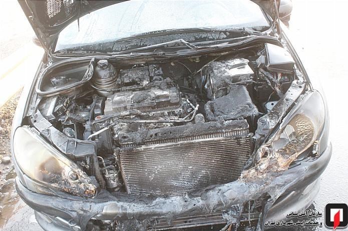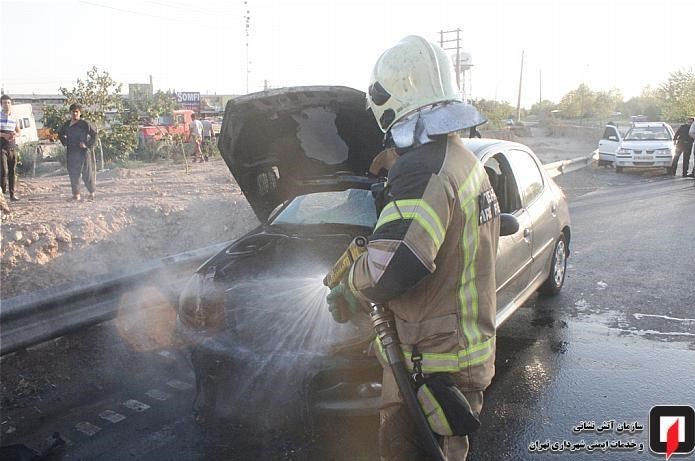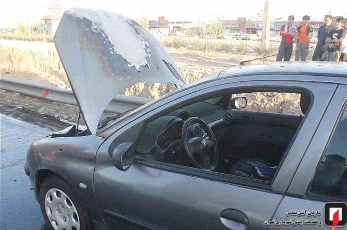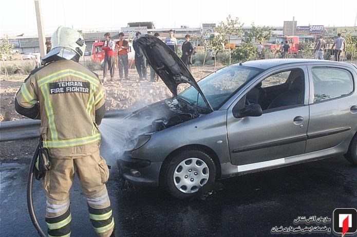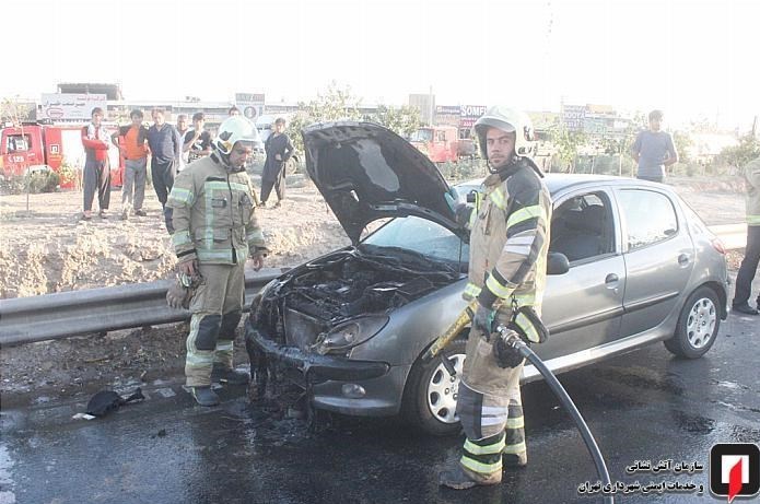 آتش گرفتن موتور پژو ۲۰۶ در بزرگراه آزادگان + تصاویر