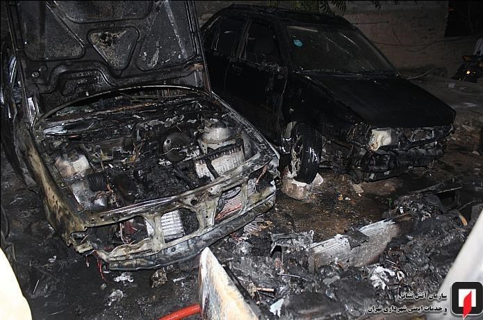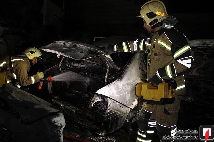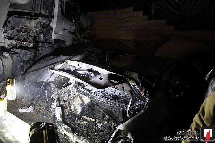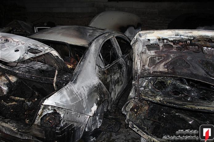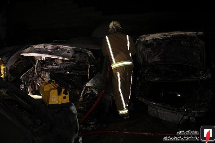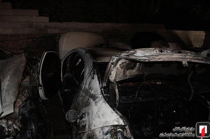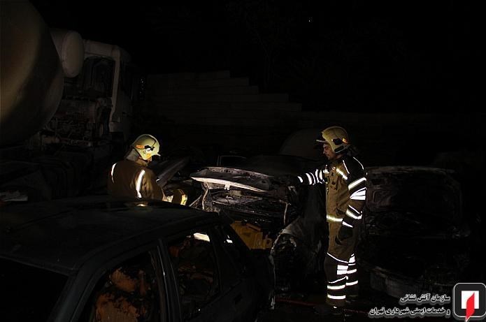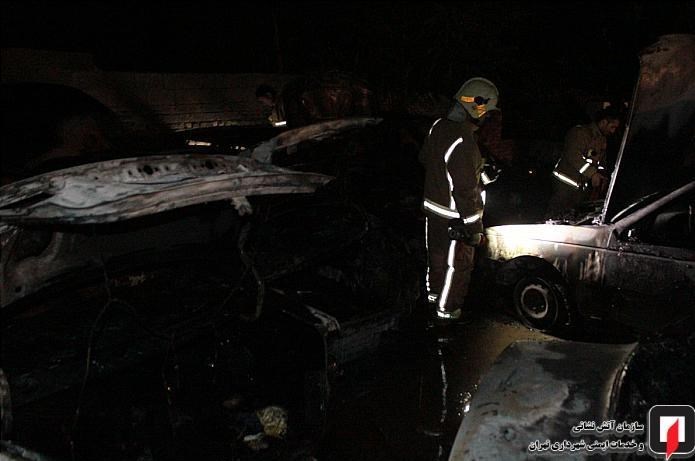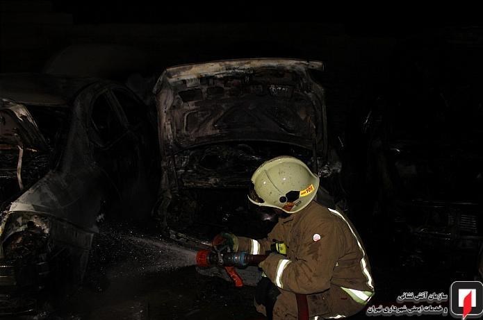 آتش گرفتن ۷ خودرو در پارکینگ روباز بلوار ارتش + تصاویر