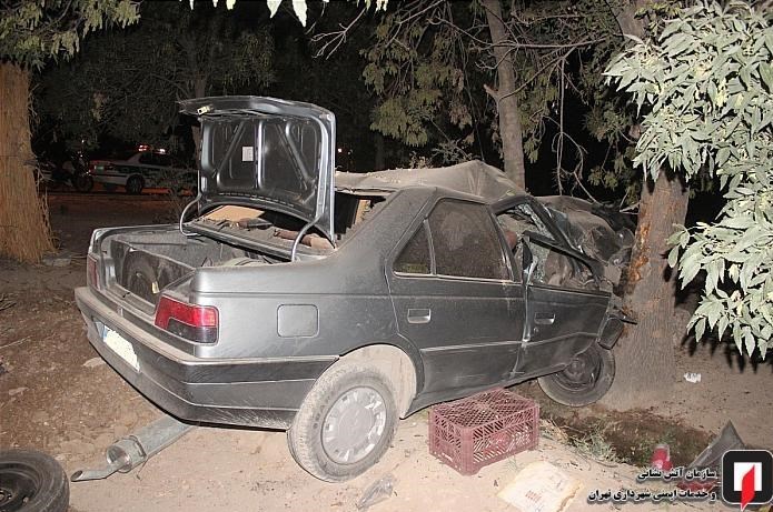 متلاشی شدن پژو ۴۰۵ پس از برخورد با درخت + تصاویر