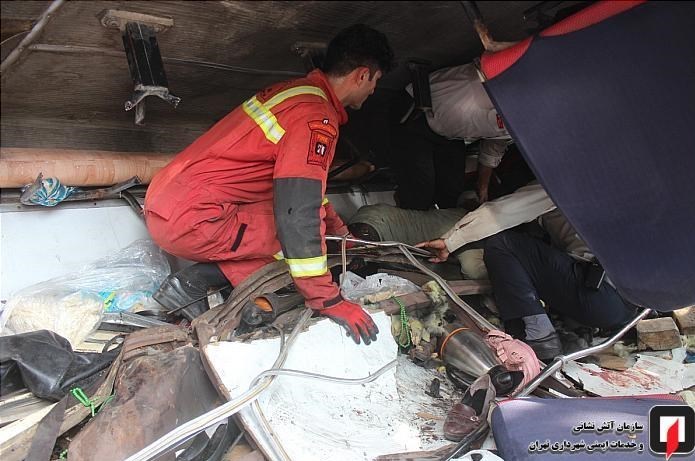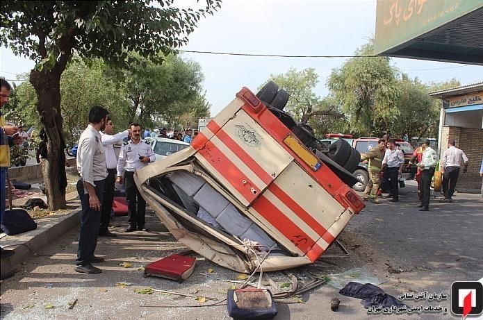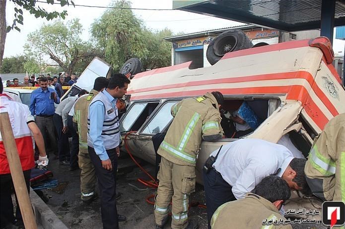 تصاویر/ حبس ۲۱ سرنشین مصدوم در مینیبوس واژگونشده