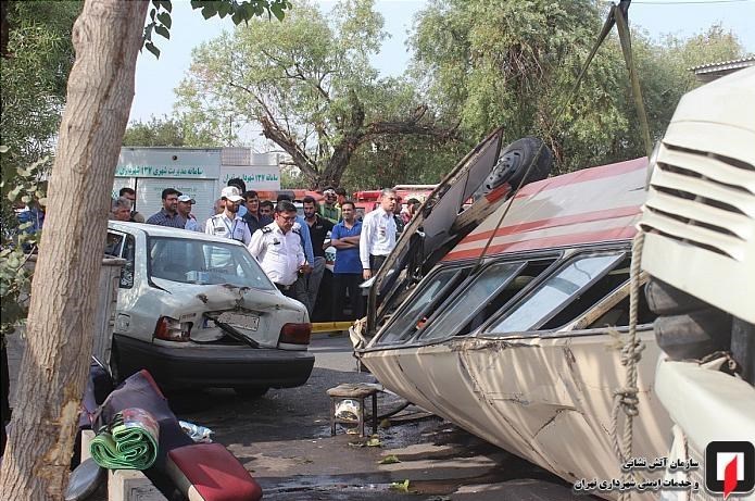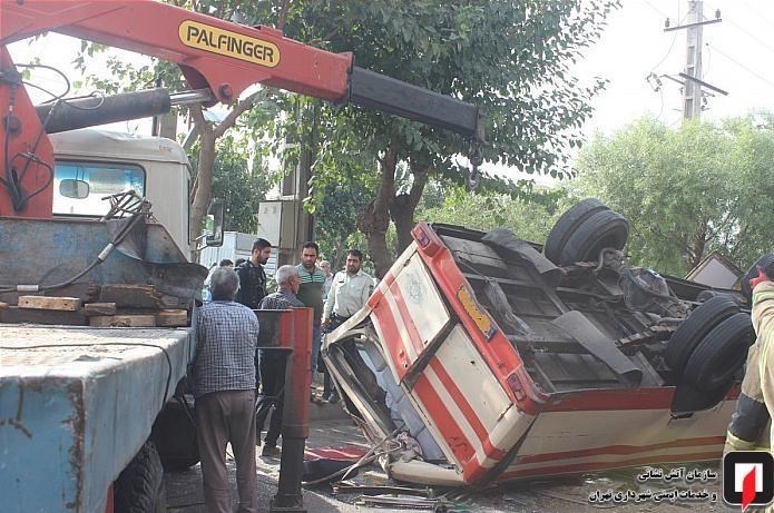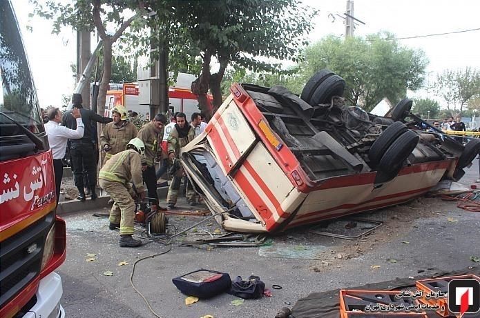 واژگونی مینیبوس شخصی حامل 21 مسافر (18 خانم، دو کودک و راننده مرد) در بزرگراه شهید آوینی، مقابل پمپ گاز سلمان فارسی منجر به مصدومیت تمامی سرنشینان شد.
