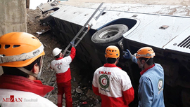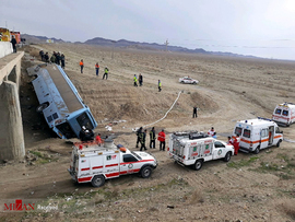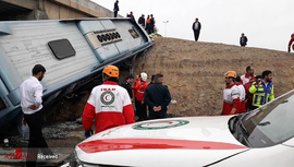 تصاویر جدید واژگونی اتوبوس در اتوبان تهران - قم + جدول اسامی