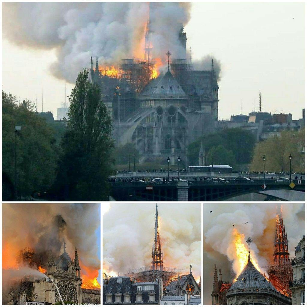 بهت مردم پاریس در خیابان‌های شهر از آتش‌سوزی کلیسای قدیمی نوتردام