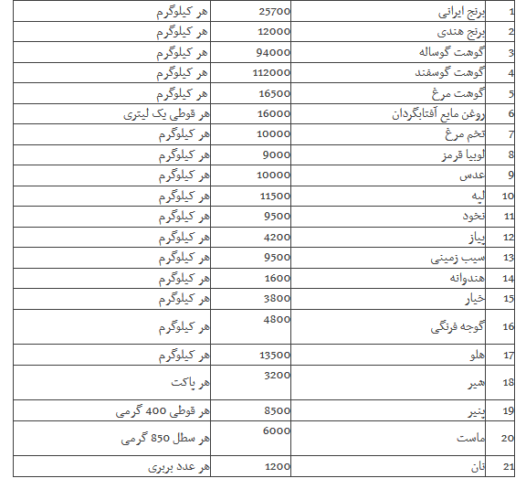 قیمت انواع اقلام پروتئینی و میوه و ترهبار و همچنین برخی مواد بهداشتی در بازار امروز مشهدمقدس اعلام شد.