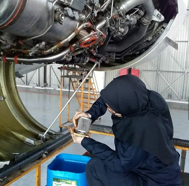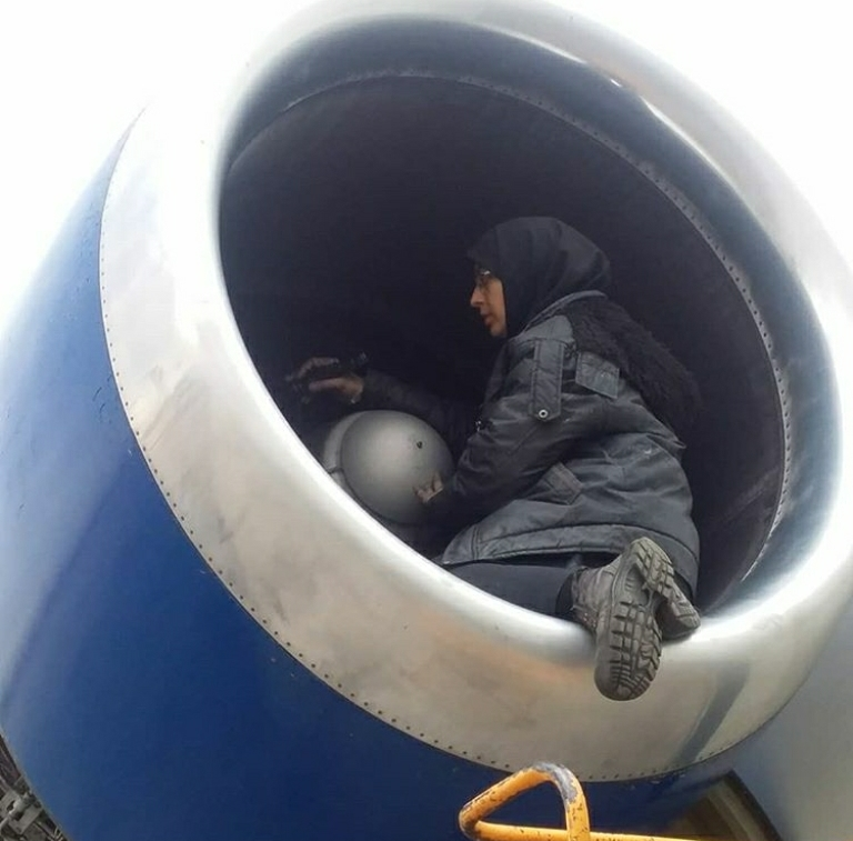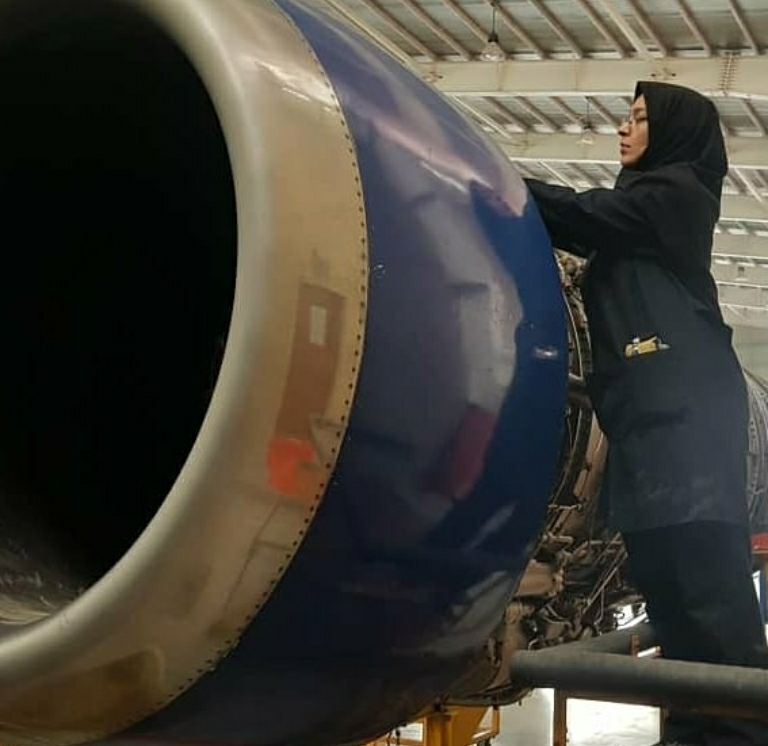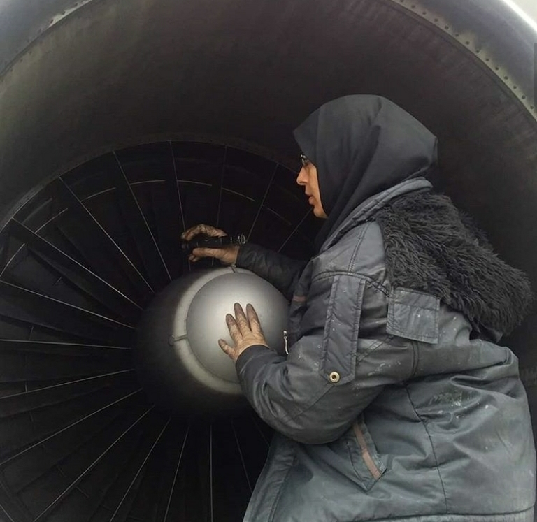 من تنها خانم فنی و مکانیک هواپیما در ایران هستم