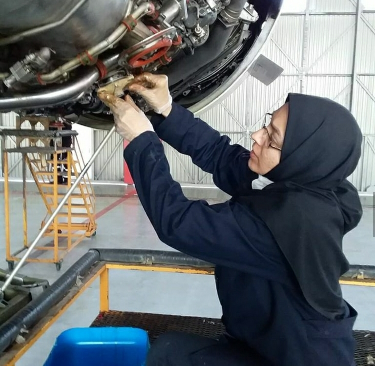 این بانوی مکانیک هواپیما میگوید: شاید اوایل کار استرسهایی داشتم ولی الان بهقدری در کارم خبره هستم که نگرانی ندارم، هیچوقت روزهای اول را فراموش نمیکنم؛ روزهایی که یک قطعه هواپیما را با کلی ذوق و شوق تعمیر میکردم و از این کار، لذت میبردم.