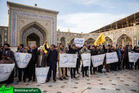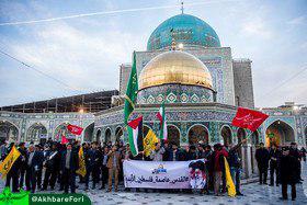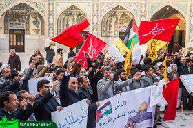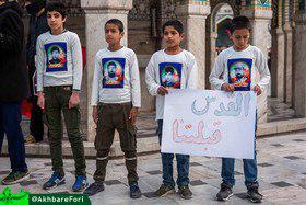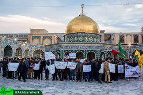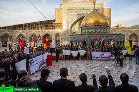 به گزارش خبر فوری به نقل از ایسنا، جمعی از دانشجویان مشهدی و زائران حرم مطهر رضوی در پاسخ به اظهارات جدید ترامپ درخصوص به رسمیت شناختن بیتالمقدس به عنوان پایتخت رژیم اشغالگر قدس، در حرم مطهر گردهم آمدند و با ایجاد حلقه انسانی به دور نماد قدس شریف در صحن قدس، حمایت خود را از قبله اول مسلمانان اعلام کردند.