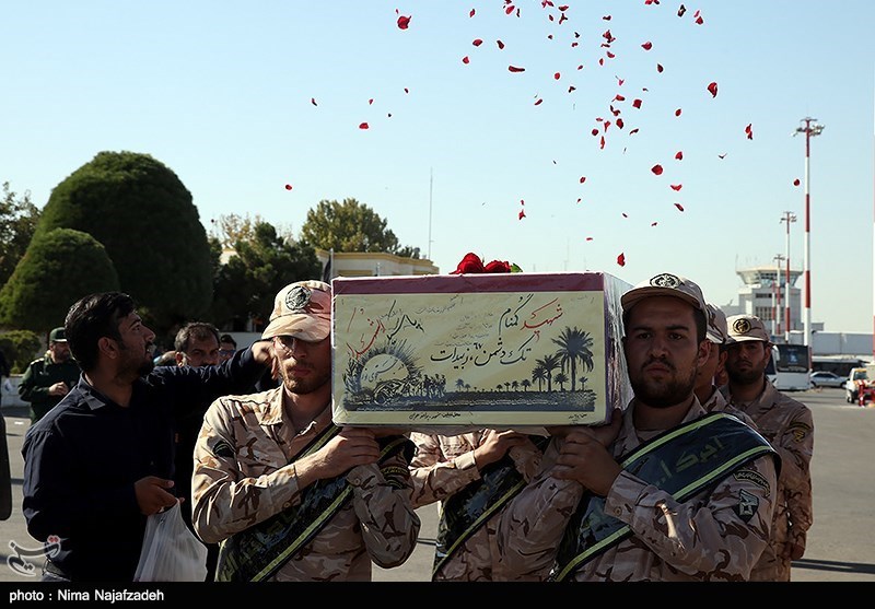 پیکر مطهر 9 تن از شهدای گمنام دوران هشت ساله دفاع مقدس و همچنین دو تن از شهدای مدافع حرم عصر امروز وارد فرودگاه شهید هاشمی نژاد مشهدمقدس شد.