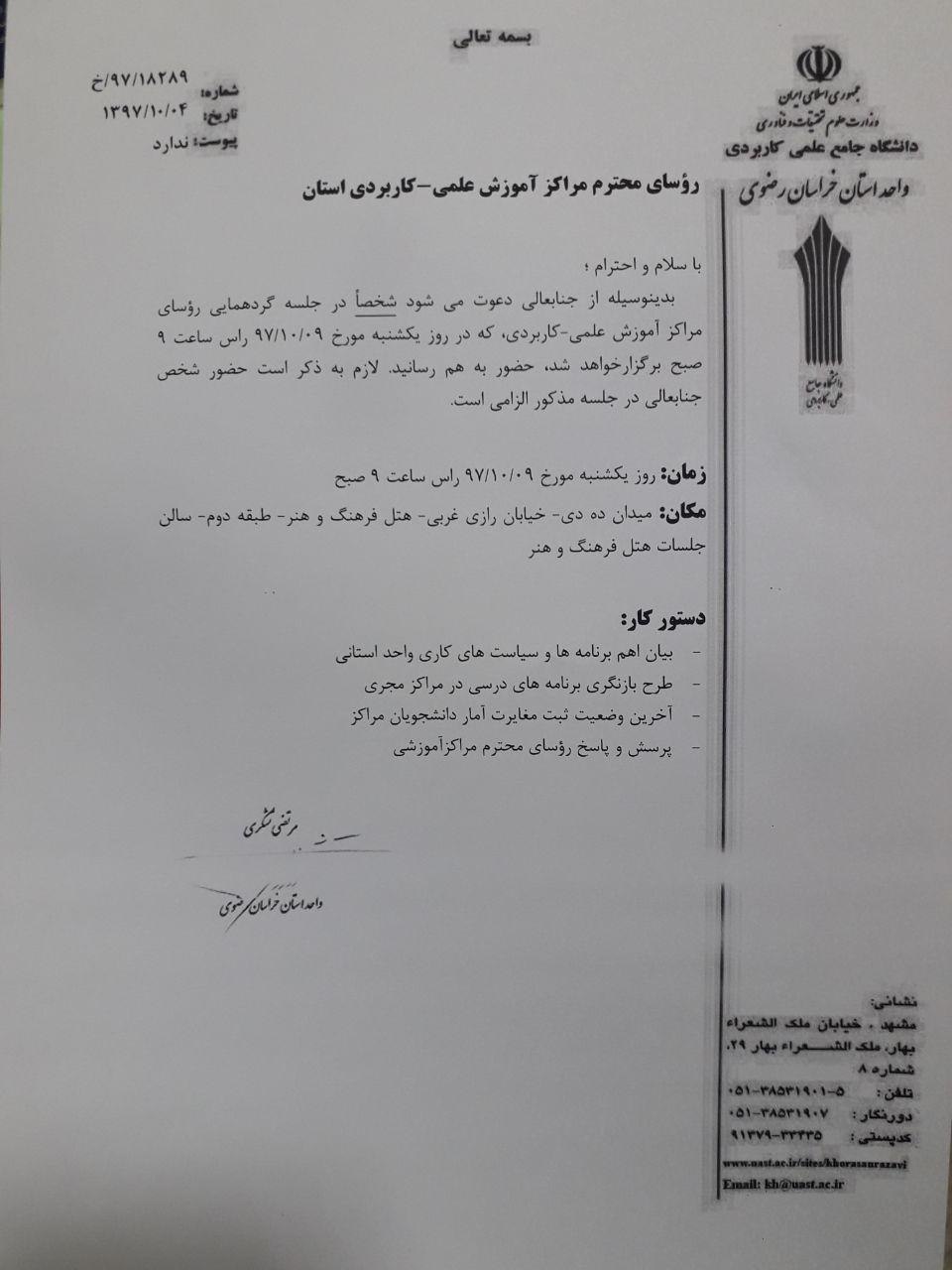 جلسه گردهمایی روسای مراکز آموزش علمی-کاربردی همزمان با راهپیمایی ۹ دی!!!