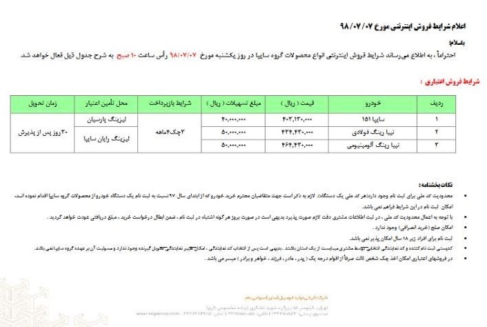 فروش اعتباری خودروهای، سایپا 151 ، تیبا رینگ فولادی و رینگ آلومینیومی امروز ساعت 10 آغاز می شود.