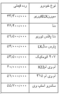 قیمت برخی خودروهای رده قیمتی 40 تا 60 میلیون تومان