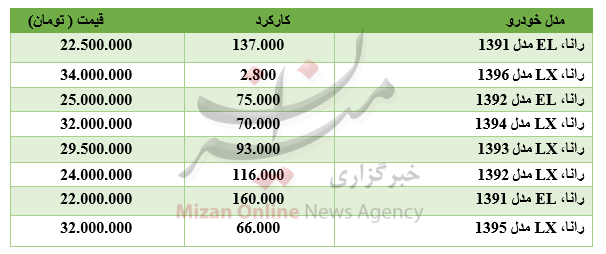 برای خرید خودروی رانا در بازار بسته به مدل موردنظر و میزان کارکرد آن باید حداقل ۲۲ میلیون تومان پرداخت کرد.