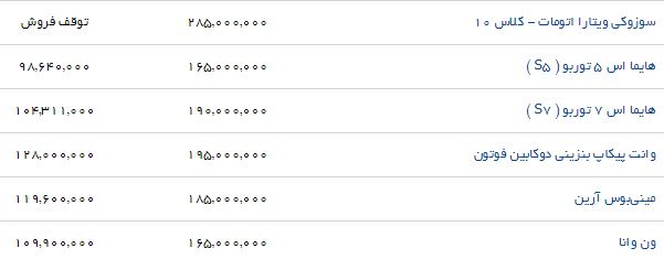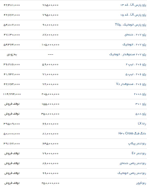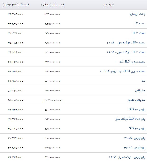 آخرین قیمت محصولات ایران خودرو در بازار و نمایندگی به شرح زیر است: