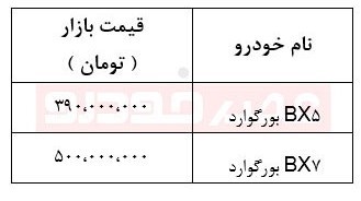 قیمت خودرو بورگوارد صفر چقدر است؟