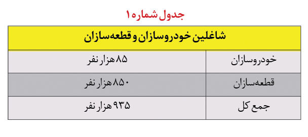 جدول شماره 1 تعداد شاغلین مستقیم در صنعت خودرو (خودروسازان و قطعهسازان) را نشان میدهد: