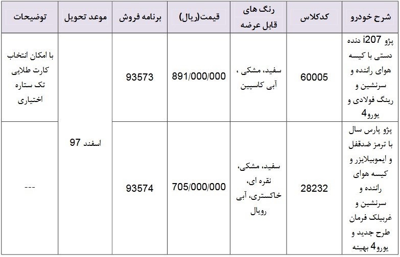 لازم به ذکر است، عرضه محصولات جدول پیوست بر اساس قیمت حاشیه بازار تنظیم شده است. در این طرح نیز افرادی که طی 18 ماه گذشته از شرکت ایران خودرو محصولی را ثبت نام کرده اند امکان استفاده از این شرایط فروش را ندارند.