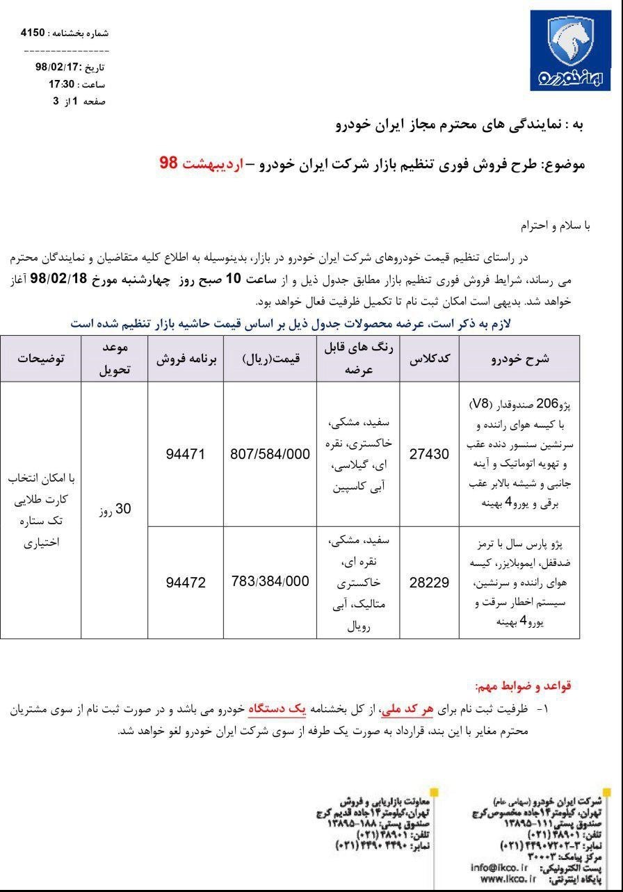 طرح فروش جدید تنظیم بازار ایران خودرو فردا چهارشنبه 18 ام اردیبهشت ساعت 10 صبح از طریق وب سایت ایران خودرو آغاز میشود.