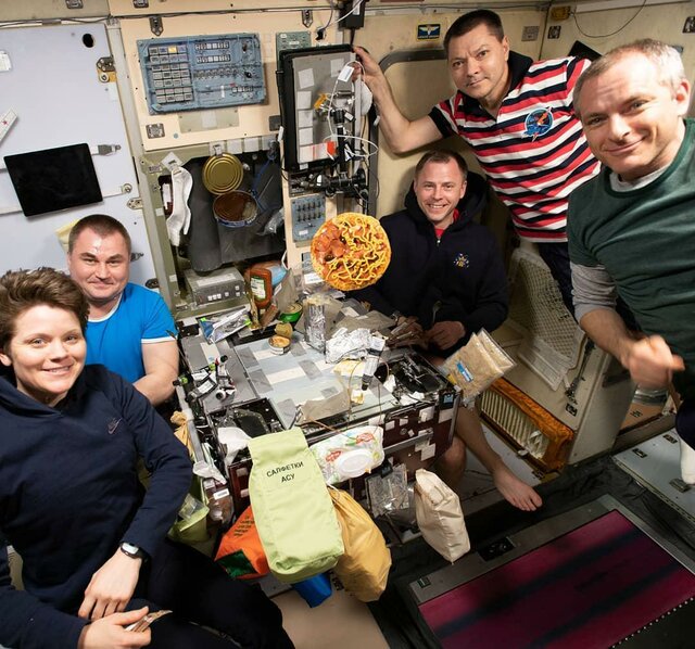 امروز شش فضانورد از ملیتهای گوناگون در ایستگاه فضایی بینالمللی، چند عکس از خود منتشر کردند که یکی از آنها در کنار یک پیتزای معلق بود.