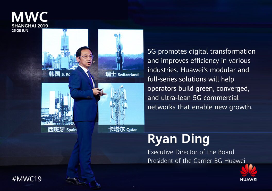 در مراسم نطق اصلی این نمایشگاه، آقای رایان دینگ، مدیر اجرایی هیئت مدیره و رئیس بخش Carrier BG که یکی از زیرمجموعه‌های اصلی هوآوی به شمار می‌آید، اعلام کرد که هوآوی در زمینه صنعت 5G به دنبال اهداف ویژه خود است که توانسته وضعیت آن را در جایگاهی تعیین‌کننده و بسیار مهم قرار دهد.