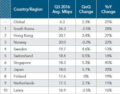 در آخرین رتبه بندی یک شرکت معتبر فناوری که اقدام به رتبه بندی سرعت اینترنت کشور ها به صورت فصلی و سالانه میکند ، کره جنوبی در صدر قرار دارد.