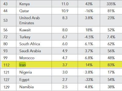 کشورمان ایران نیز با سرعت ۳٫۷ مگابیت در ثانیه در جایگاه ۱۱۲ ام این رتبه بندی قرار دارد، میانگین سرعت اینترنت در کشور نسبت به آماری که همین شرکت سال گذشته منتشر کرده بود ۸۳ درصد بهتر شده است اما با این وجود همچنین با میانگین جهانی اختلاف چشم گیری دارد، همچنین سرعت اینترنت کشور نسبت به سه ماهه گذشته نیز ۱۴ درصد رشد داشته است.