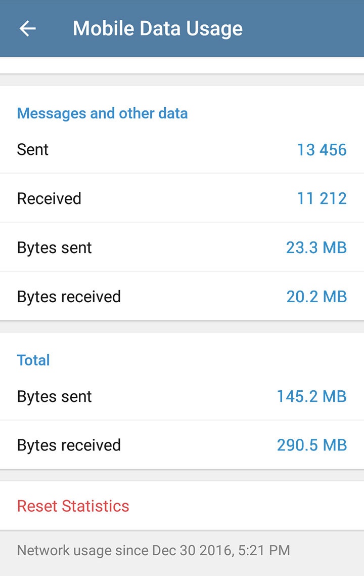 در جدیدترین آپدیت این اپلیکیشن امکانات گستردهتری برای اندرویدی ها در مقایسه با آی او اسی ها تعریفشده، تا جایی که کاربران میتوانند میزان دیتای ارسالشده و دریافت شده روی شبکه وای فای یا از طریق شبکه داخلی و یا از روی سیمکارت را مشاهده کنند. آمار میزان مصرف روی شبکه چیزی است که کاربران اندرویدی و آی او اسی مدتها دنبال آن بودند و حالا با کلیک در بخش Data and Storage میتوانند به ریز ارسال شدهها و دریافتیها دست پیدا کرد.