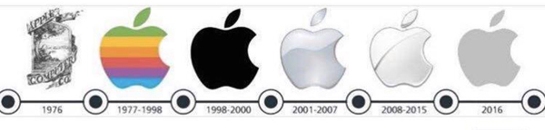 از سال 1976 تا به حال، لوگوی این شرکت دچار تغییر و تحولات زیادی شده تا به شکل امروز خود برسد. آخرین تغییری که روی لوگوی شرکت اپل انجام شد، در سال 2016 اتفاق افتاد. این تغییرات را می‌توانید در تصاویر زیر مشاهده کنید.
