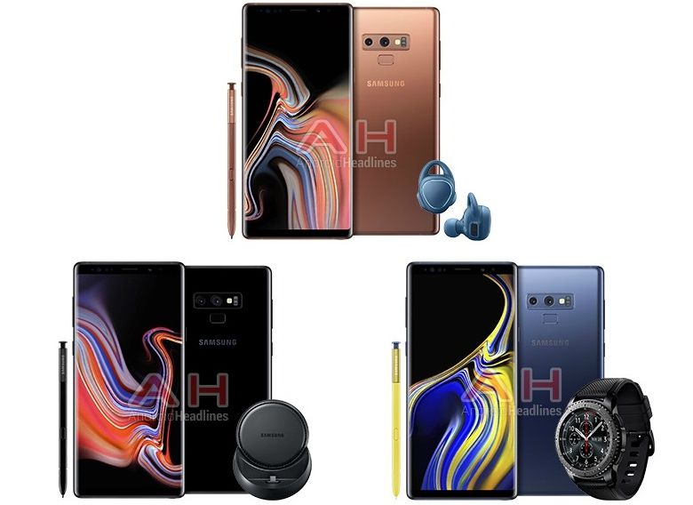 به تازگی تصاویری از نسخه قهوه ای رنگ و مشکی رنگ گلکسی نوت ۹ در فضای مجازی فاش شده است. بر اساس این تصاویر نسخه قهوه ای رنگ این پرچمدار به همراه ایربادز Gear IconX، نسخه مشکی رنگ آن همراه با شارژ وایرلس و نسخه آبی رنگ آن در باندلی به همراه ساعت هوشمند Gear S3 در اختیار خریداران قرار می گیرد.