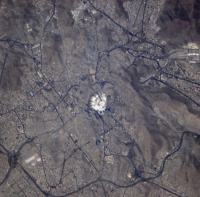 این تصویر جالب از شهر مکه توسط "توماس پسکی" (Thomas Pesquet) فضانورد فرانسوی آژانس فضایی اروپا از ایستگاه فضایی بین المللی ثبت شده است.