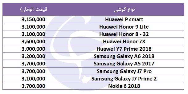 انواع گوشیهای موجود در بازار با قیمت ۳ میلیون تومان در بازار به شرح زیر است: