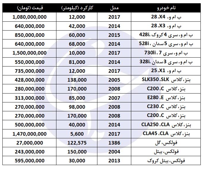 قیمت خودروهای آلمانی در بازار تهران به شرح زیر است: