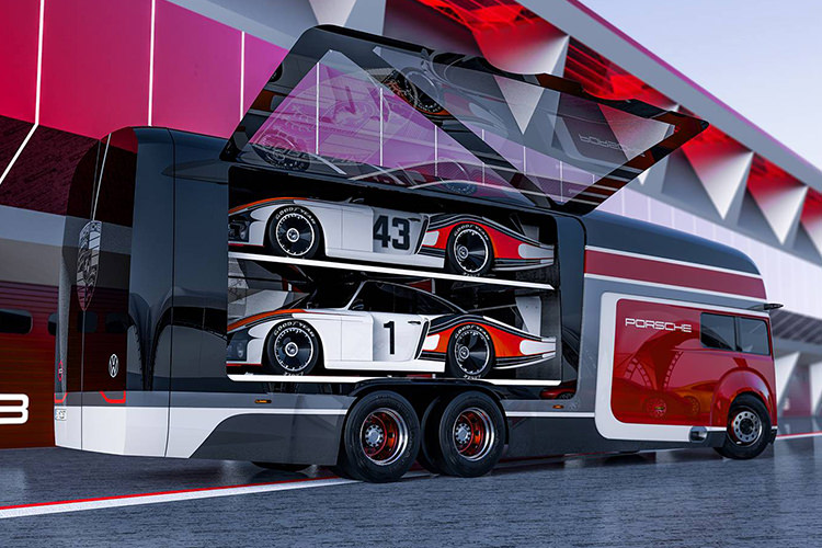 یک هنرمند روسی رندر جالبی از ون مخصوص حمل خودروهای مسابقهای پورشه، طراحی کرده است.