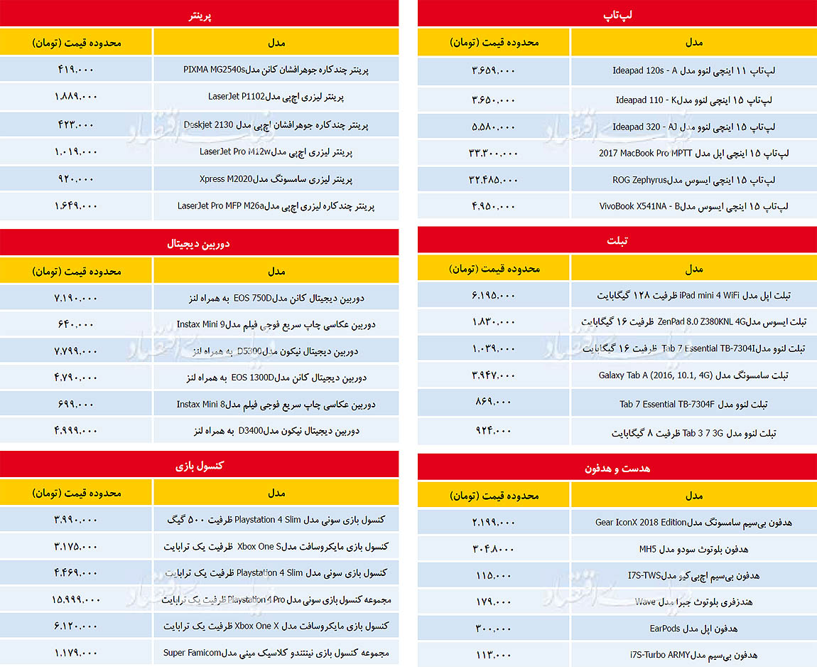 نگاهی به قیمت برخی محصولات کامپیوتری در بازار دیجیتال