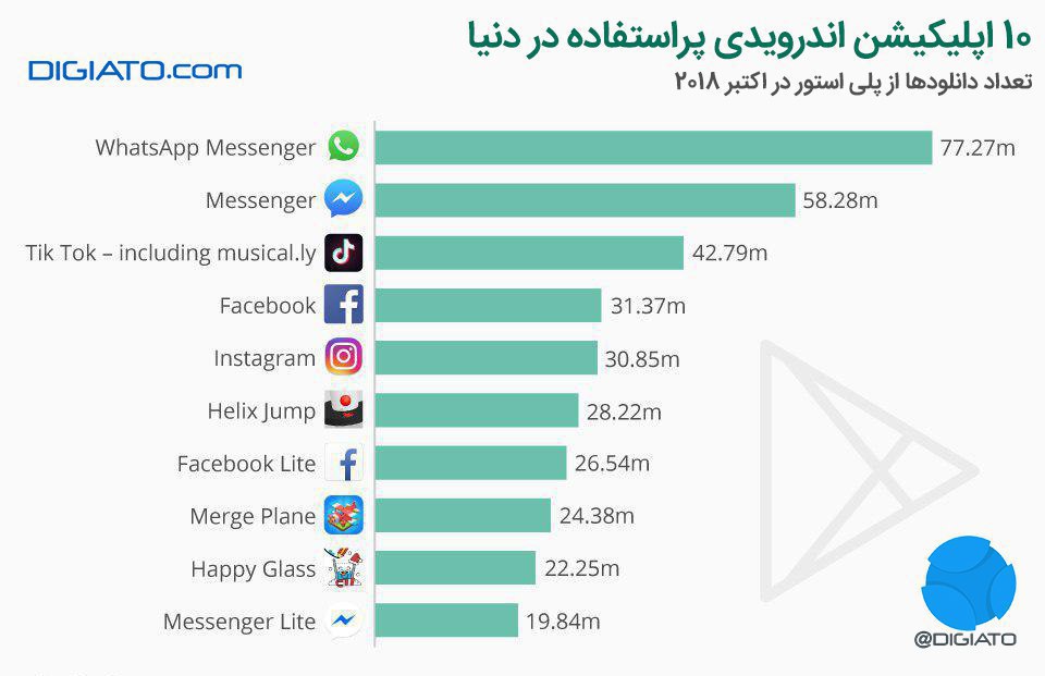 ده اپلیکیشن اندرویدی پر استفاده دنیا در ماه اکتبر 2018