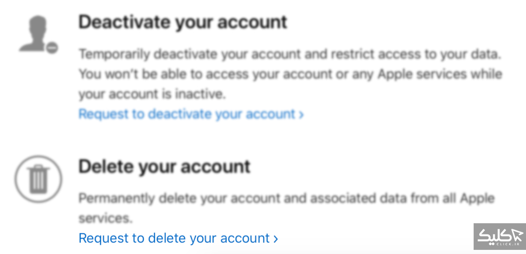 -در صورتی که می خواهید برای مدت زمان خاصی اپل آیدی خود را از دسترس خارج کنید، می توانید به جای حذف دایمی اکانت آن را در حالت دی اکتیو قرار دهید.