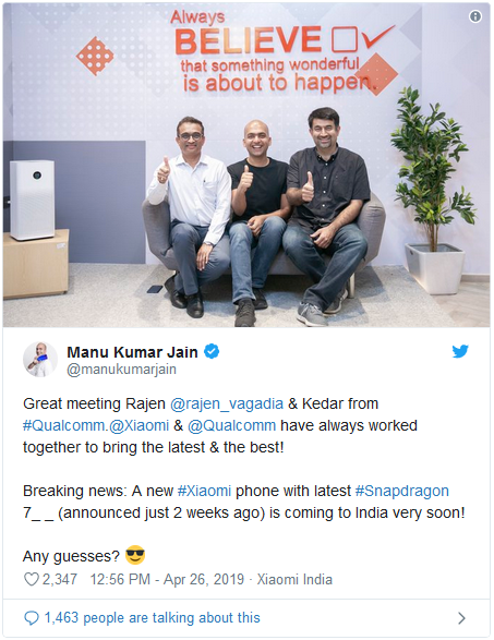 پس از جلسه موفقی که بین مدیران شیائومی و کوالکام صورت گرفت، مانو کوما جین، مدیر عامل شیائومی، با انتشار پستی در صفحه توئیتر خود تبلیغی برای گوشی جدید این شرکت منتشر کرد. وی در این پست از دستگاهی نوشته است که یا از Snapdragon 730 یا Snapdragon 730G به عنوان پردازنده خود استفاده میکند.