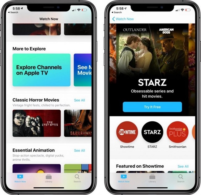 چهارمین بتای iOS 12.3 با نسخه تازهای از اپلیکیشن Apple TV با ظاهر و رابط کاربری جدید همراه است. این اپلیکیشن به یک الگوریتم جدید تجهیز شده که بر اساس تاریخچه فیلمها و برنامههای تلویزیونی تماشا شده توسط کاربر، موارد مرتبط را پیشنهاد میکند.